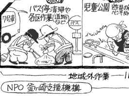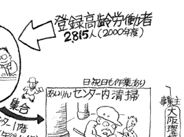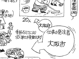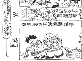 その点、やはり大阪市や府がこの地域の55歳以上の高齢者のために1994年秋から少しずつ出し始めた<高齢者特別清掃事業>は、誰にでもすぐできる仕事として最も効果があります。