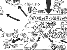 建設現場での日雇い仕事に長年肉体を酷使し、ほとんど、あるいは半ば、野宿状態の高齢労働者にとって経済学の教科書的な「転職」はあまりにも困難が多く、そうした層の人々はこういう公的就労で少しでも生活をささえるしかないのが現実です。放置すれば野宿者の激増につながるわけですから、行政はこうした仕事の意義をもっと積極的にとらえ、量的にも拡大する必要があります。この分野で、受託者であるNPO釜ケ崎支援機構も大きな役割を果たしています。 |